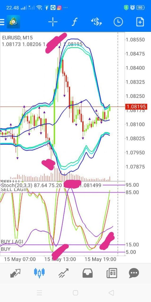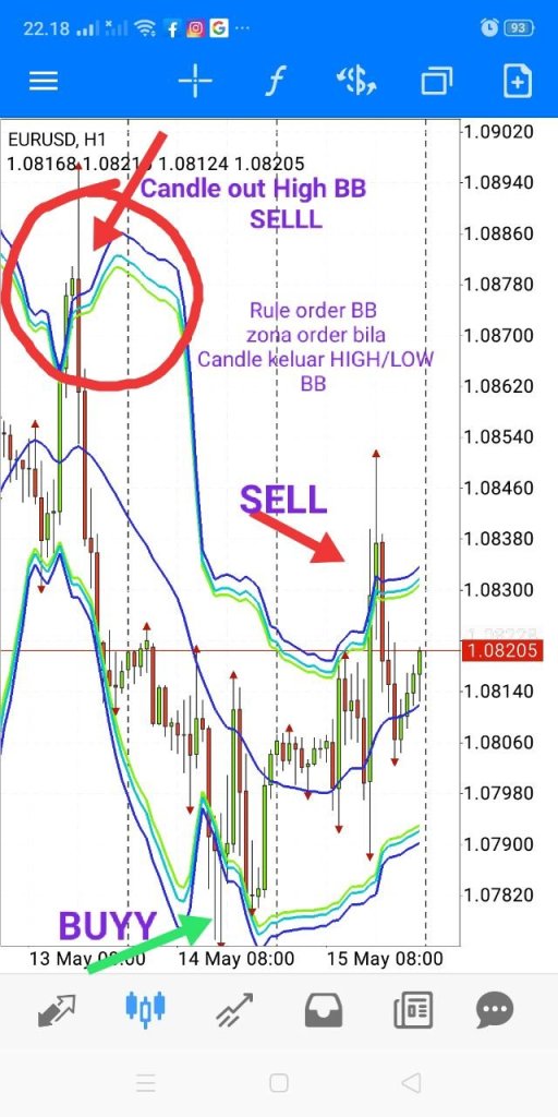 Bila candle sudah menyentuh HIGH LOW BB